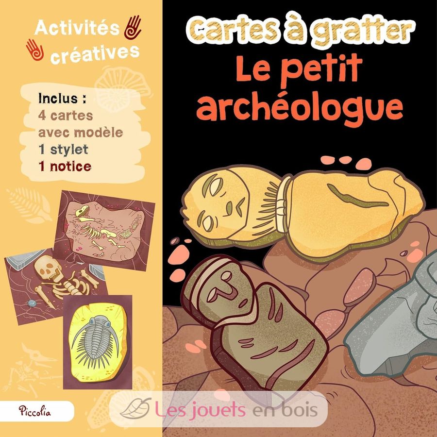 Découvrez le kit créatif Cartes à gratter Petit archéologue édité par Piccolia, une activité créative de Scratch Art pour les enfants à partir de 4 à 8 ans.