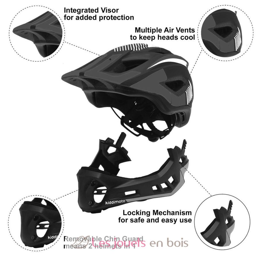 Un casque intégral pour enfant au colori audacieux qui offre une protection complète pour la pratique du vélo, draisienne, VTT, BMX, skateboard, trottinette... en toute sécurité. Il est parfait pour tous les petits aventuriers car la mentonnière dispose d' un mécanisme de verrouillage breveté pour une prise sûre et peut être retirée en un clic, ce qui en fait un casque 2 en 1.