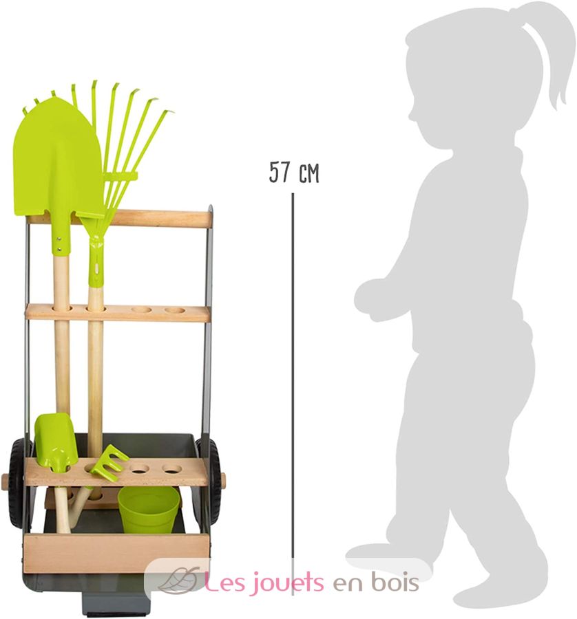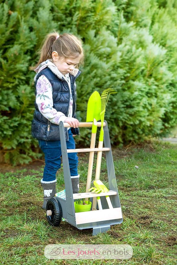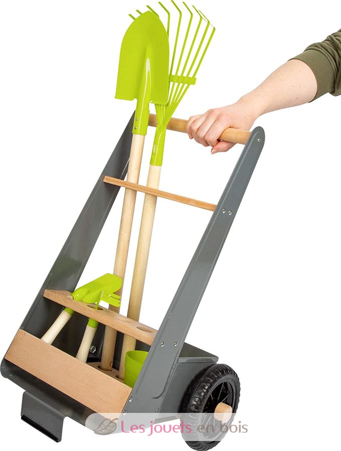 Chariot avec outils de jardin pour enfant de la marque Small Foot. Référence 11663.