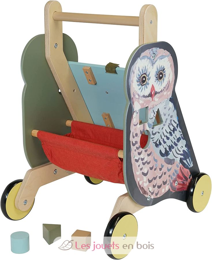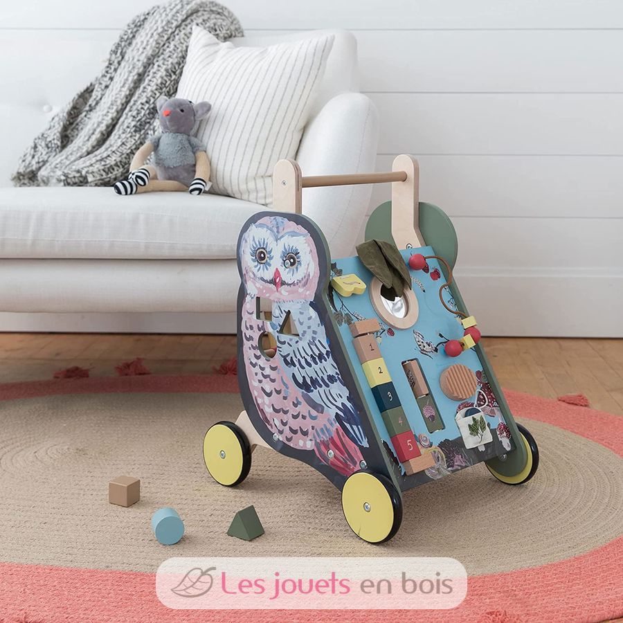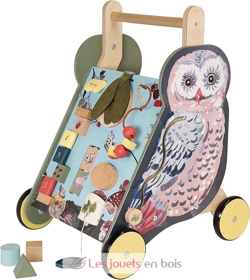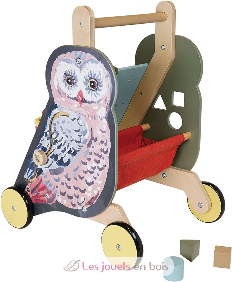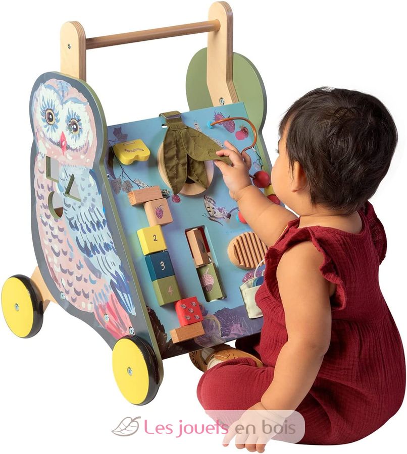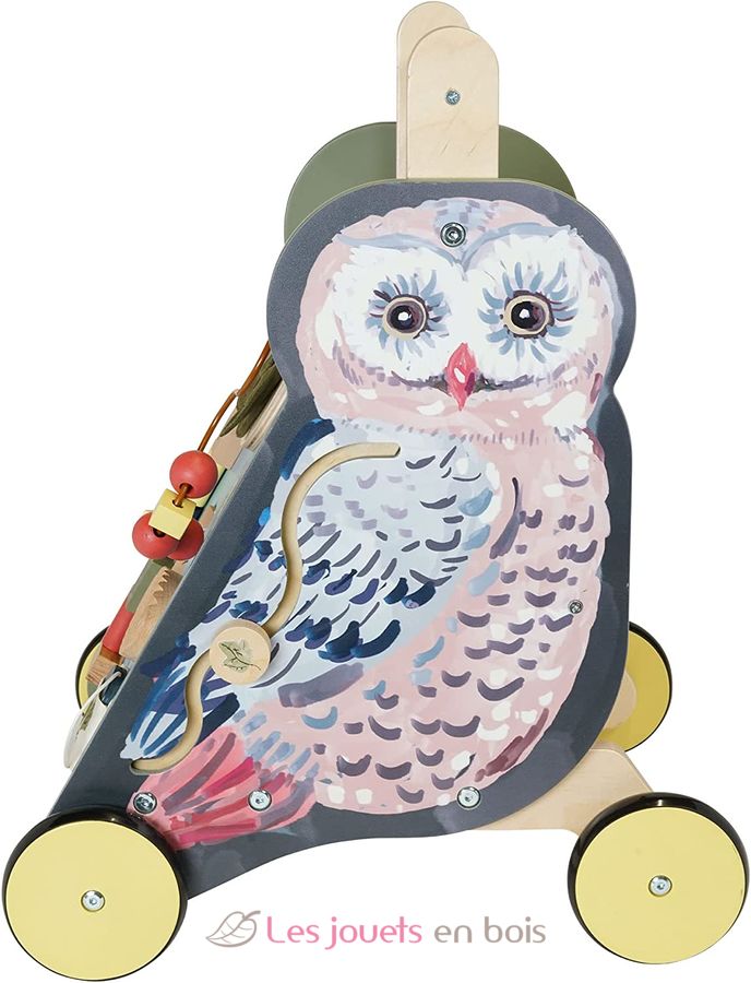 Chariot d'activités à pousser Chouette, un chariot de marche de la marque Manhattan Toy.