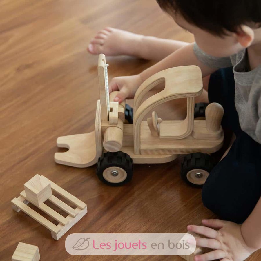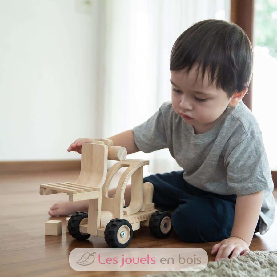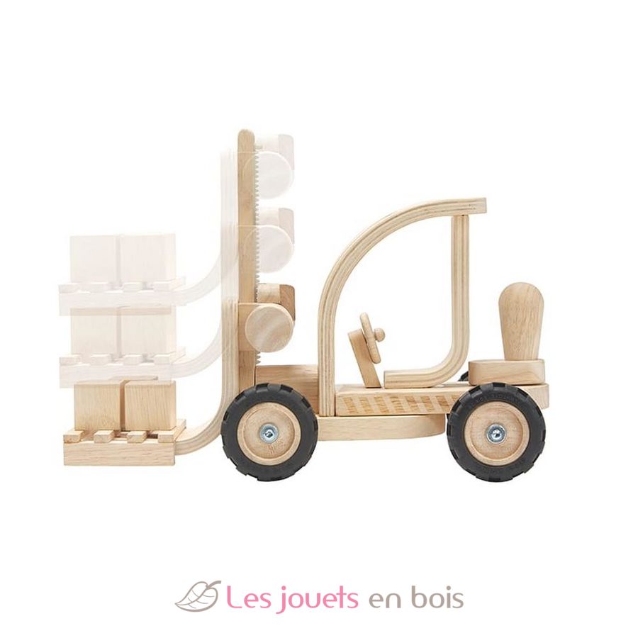 Les enfants peuvent entreprendre n’importe quel chantier avec ce chariot élévateur en bois d'hévéa robuste.