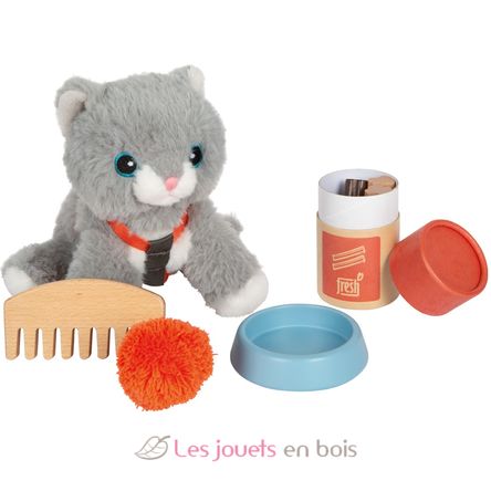 Chat avec sac et kit de soins, un jeu d'imitation de la marque Small foot.