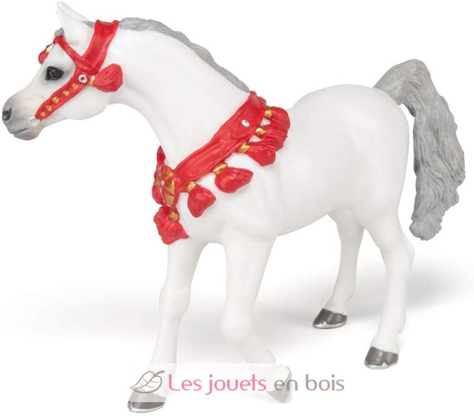 Cheval arabe blanc en tenue de parade, une jolie figurine sur le thème des équidés, peinte soigneusement à la main et modelée de façon très réaliste. Les figurines Papo deviendront rapidement la base d'une collection à enrichir progressivement pour l'éveil et la découverte de votre enfant.