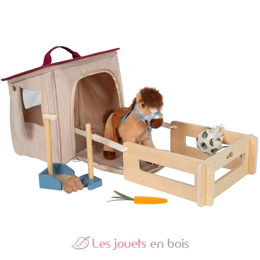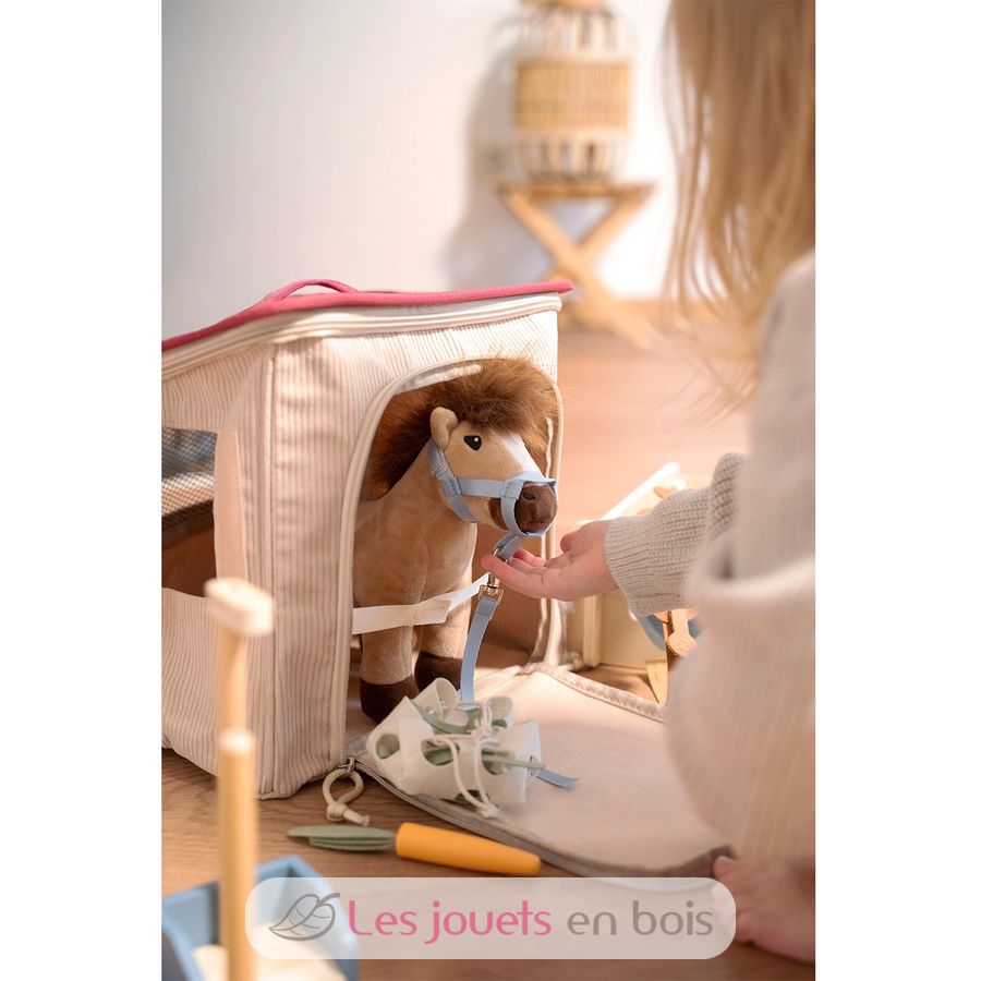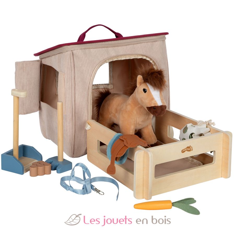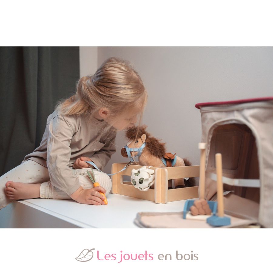 Cheval avec écurie et accessoires, un jeu d'imitation de la marque Small foot.