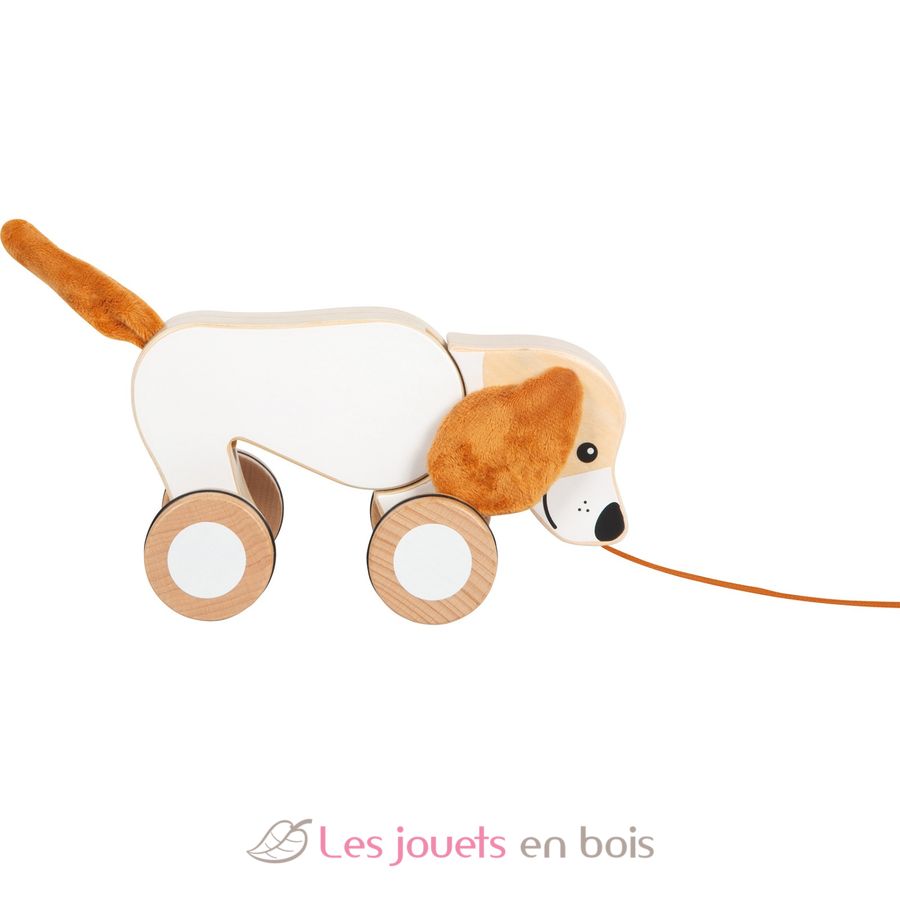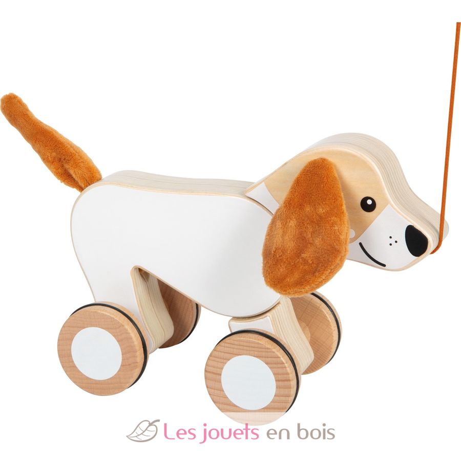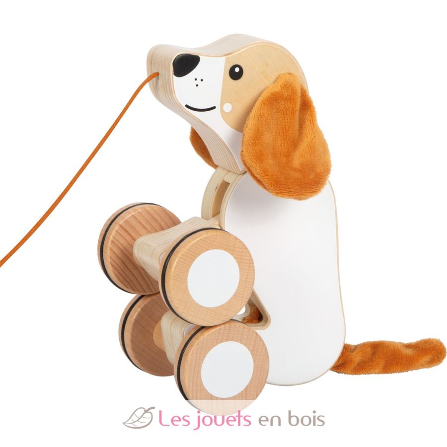 Voici le meilleur ami des petits qui apprennent à marcher ! Cet adorable chien à tirer en bois avec ses oreilles crépitantes est le compagnon idéal des jeunes enfants lors de leurs premières tentatives de marche.
