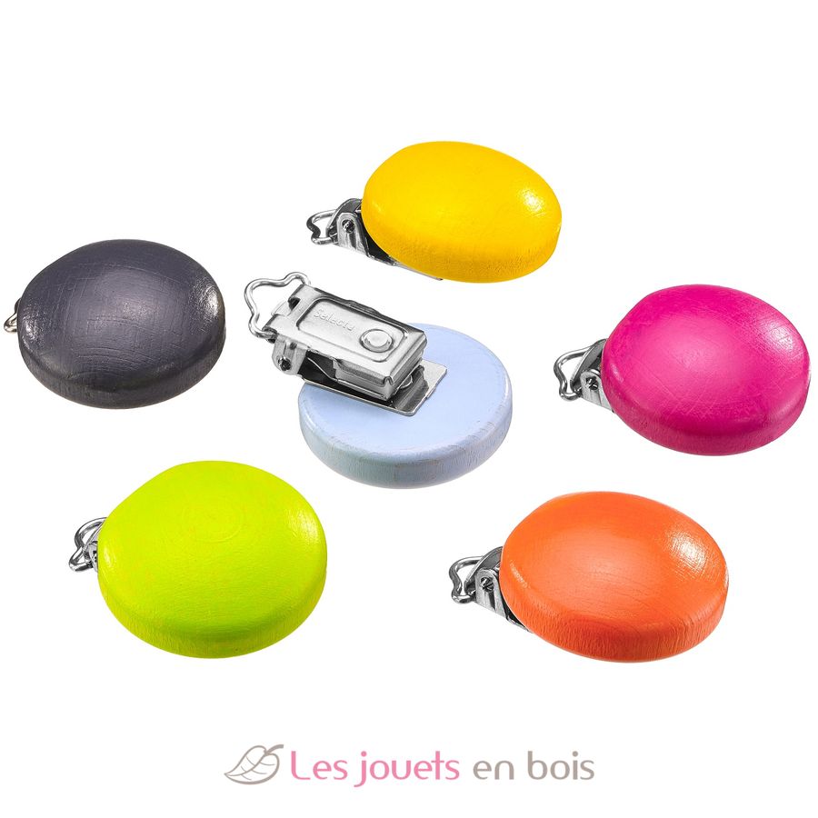 Set de 6 clips de fixation en bois massif, fabriqués en Allemagne par la marque Selecta. Diamètre 3,5 cm.
