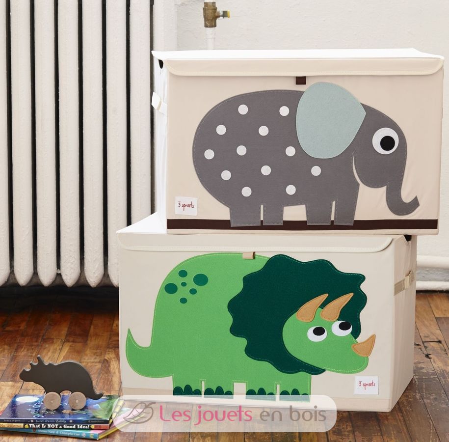 Coffre à jouets Dino, un coffre de rangement en tissu (100% polyester) de la marque 3 Sprouts.