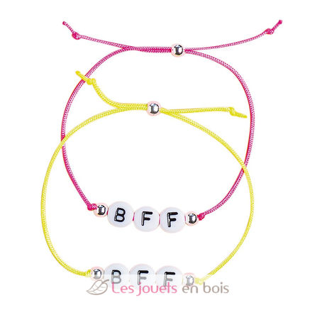 La boite devient également un joli coffret à bijoux que l'on peut conserver pour y exposer ces créations. Ce kit contient 1 roue, 6 perles lettre (B,F) pour faire le fameux 'BFF', 1 perle cœur doré, 7 breloques (œil, coquillage, fleurs, love, cœur), 8 anneaux, 1 fermoir, 6 perles grises, 1 anneau tige, 2 petites perles, 1 chaine dorée, 1 pompon jaune et 2 embouts dorés.