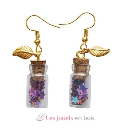 Entrez dans un monde féérique plein d'étoiles et de paillettes ! Ce kit créatif se compose de nombreux accessoires et permet de réaliser une paire de boucles d'oreille, un collier, un porte clés et un bracelet ornés de jolies petites fioles. Un livret pas à pas détaillé rendra la confection des bijoux très facile. Il suffit de remplir des petites fioles d'étoiles, de paillettes ou de sable et de composer ensuite son bijou. Votre enfant pourra ensuite porter ses jolies créations ou les offrir pour un cadeau original et tendance !