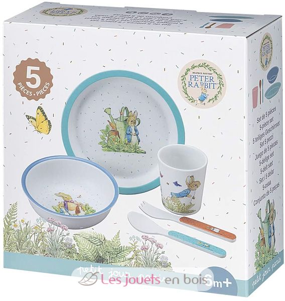 Coffret 5 pièces Pierre Lapin bleu, un set de vaisselle pour enfant de la marque Petit Jour.
