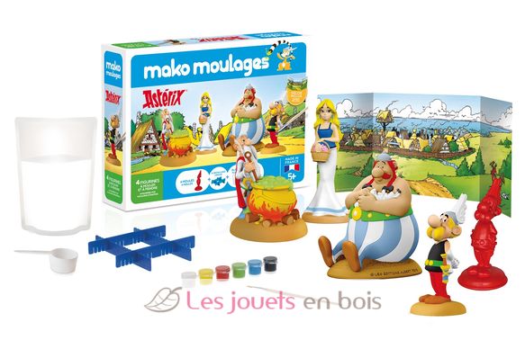 Coffret mako moulages Astérix et Obélix avec 4 figurines à mouler et à décorer. Fabriqué en France.