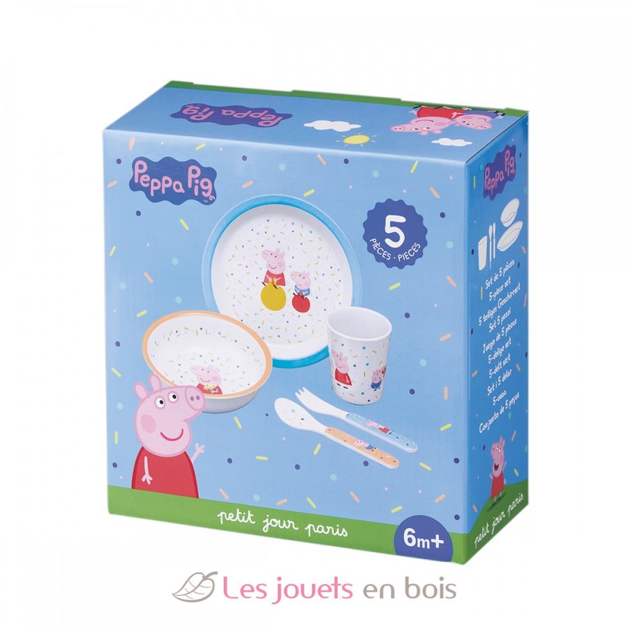 Coffret 5 pièces Peppa Pig, un set de vaisselle pour enfant de la marque Petit Jour.