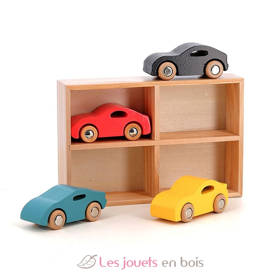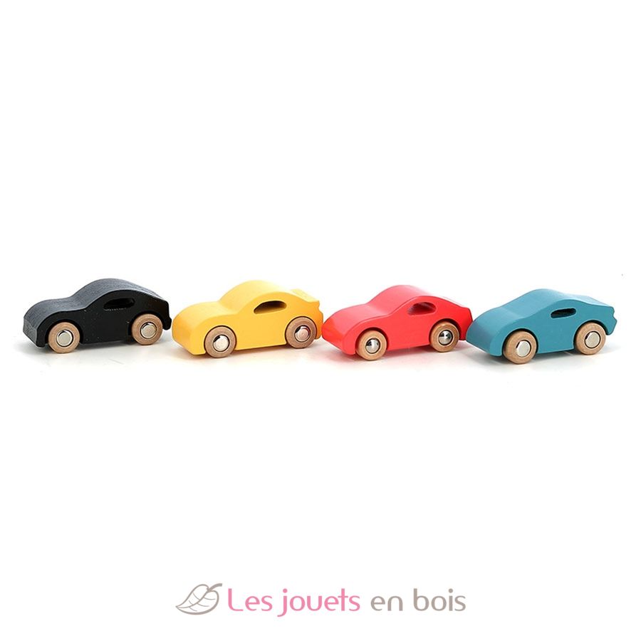 Une charmante collection de 4 voitures de sport en bois, conçues pour captiver petits et grands (longueur environ 7 cm).