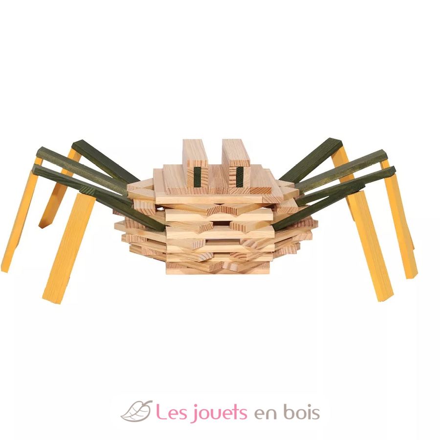 Ce jeu de construction en bois et écologique vous permetta d’élaborer de multiples constructions sans aucun point de fixation. L'araignée est une première construction, guidée par étapes, qui ouvre la voie à toutes sortes d'autres animaux et structures. L'assortiment de planchettes invite les constructeurs à jouer par la suite avec leur imaginaire et à explorer toutes leurs idées...