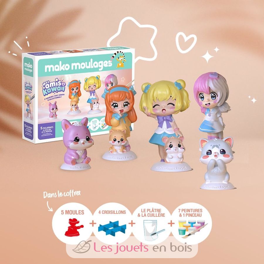 Coffret mako moulages Mes amis Kawaï avec 5 figurines à mouler et à décorer. Fabriqué en France.