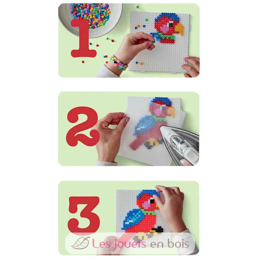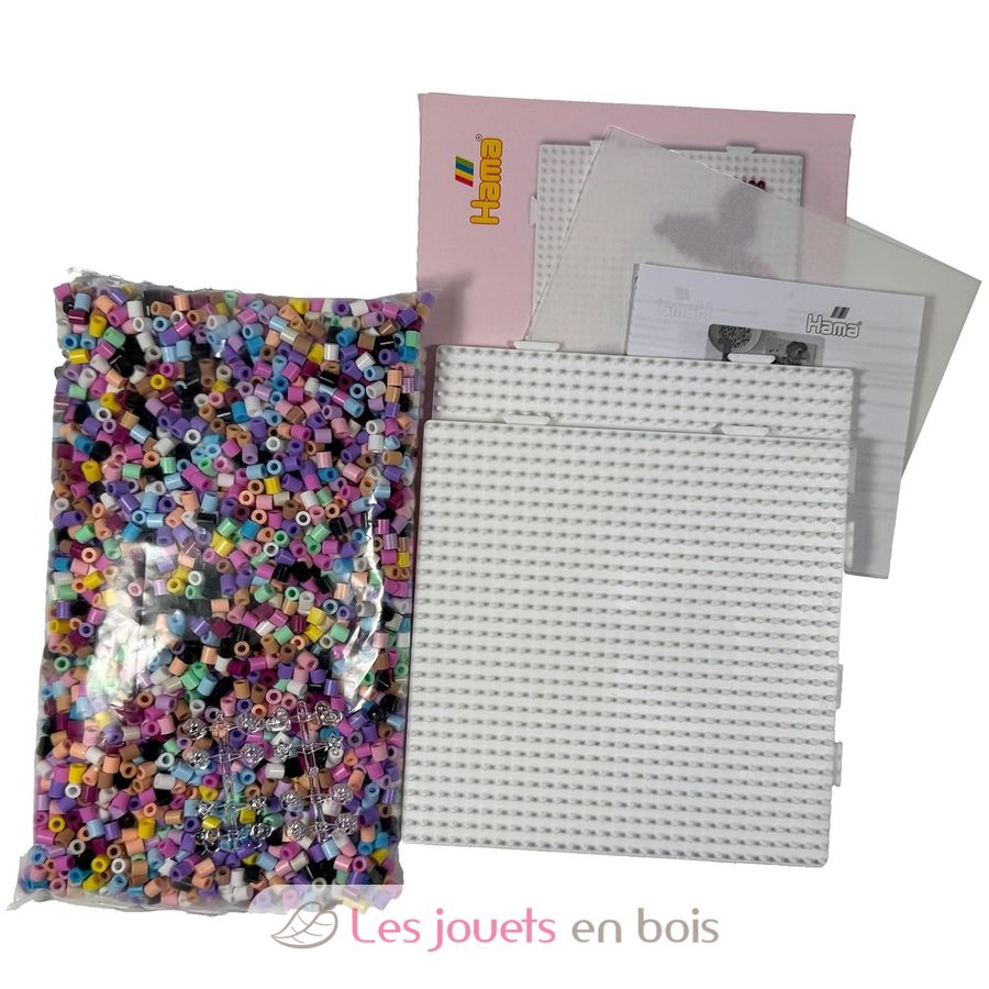 Contenu : environ 4000 perles en plastique, 2 plaques, 2 joyaux, une feuille de modèles en couleur, une feuille d'instructions et du papier à repasser.