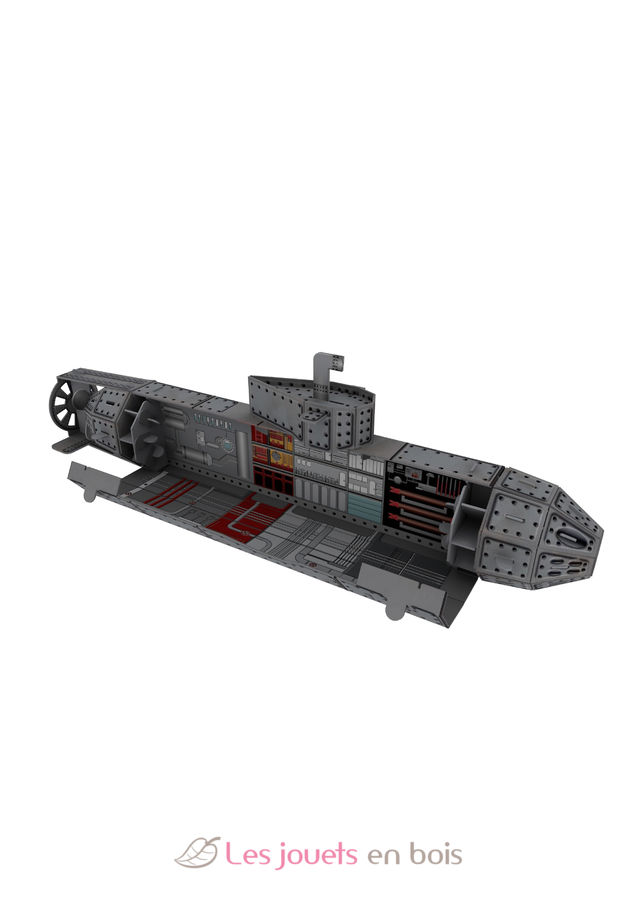 Découvre tous les secrets technologiques, l’histoire et le fonctionnement des sous-marins ! Pour tout savoir sur les instruments de bord et les systèmes qui permettent d’explorer le fond de la mer, monte à bord et embarque-toi pour une passionnante aventure ! Tu trouveras à l’intérieur un livre plein d’informations, et les pièces nécessaires pour construire une magnifique maquette 3D (55 x 15 cm) ! A partir de 6 ans.