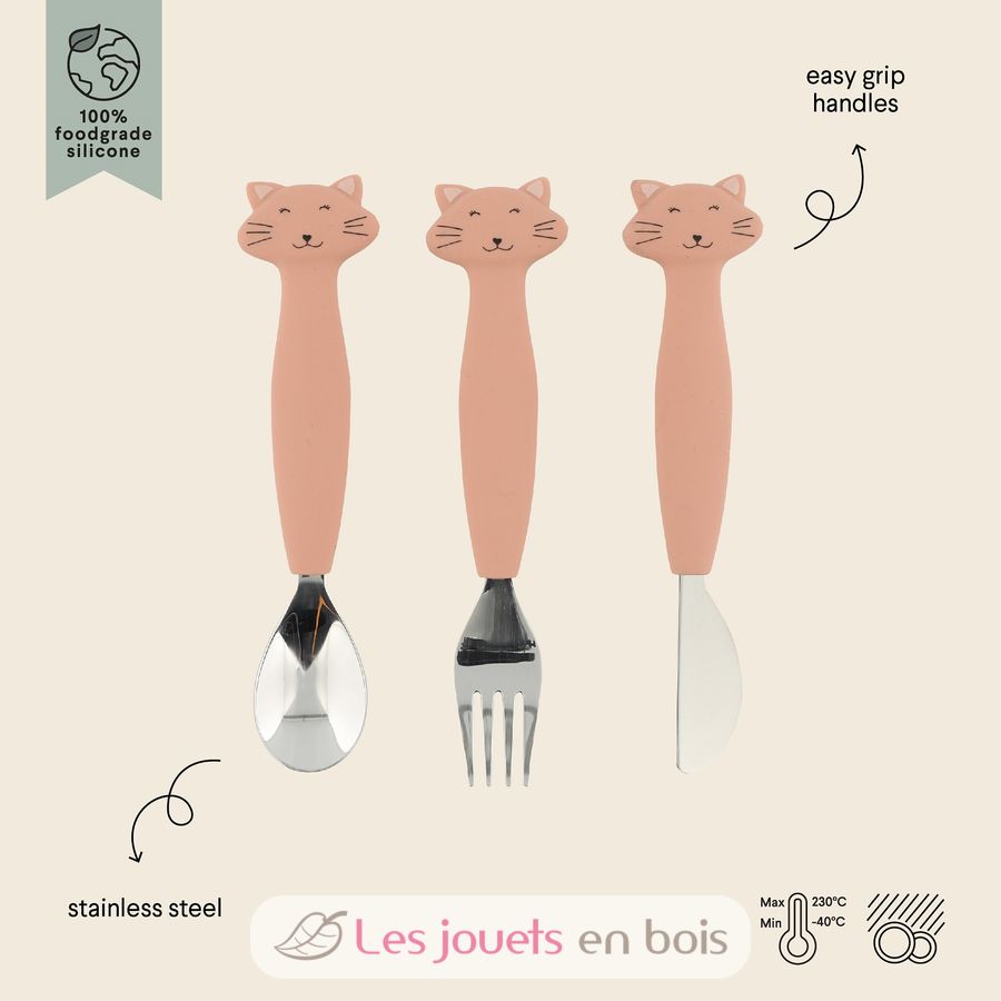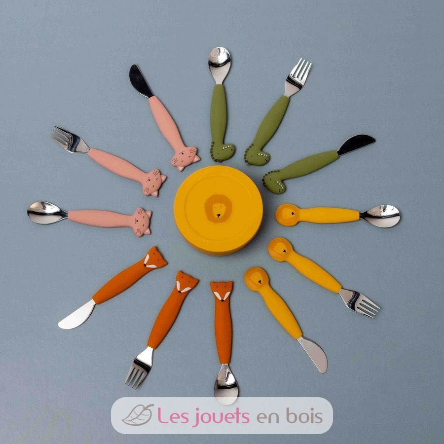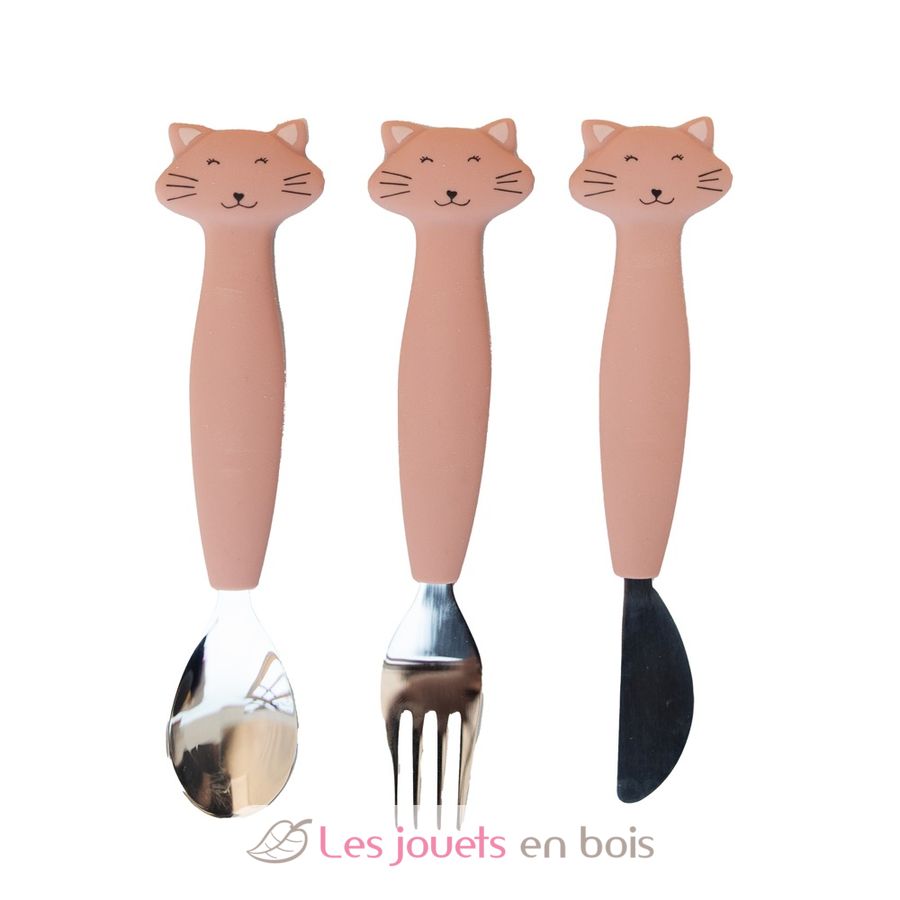 Cet ensemble de 3 couverts (fourchette, cuillère et couteau) a été spécialement conçu pour les jeunes enfants à partir de 12 mois.