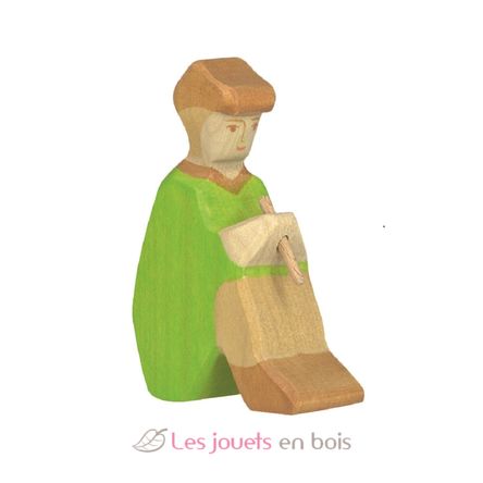 Berger assis, une figurine en bois Holztiger (réf. 80317). Dimensions : 6.5 x 2,3 x 9 cm.