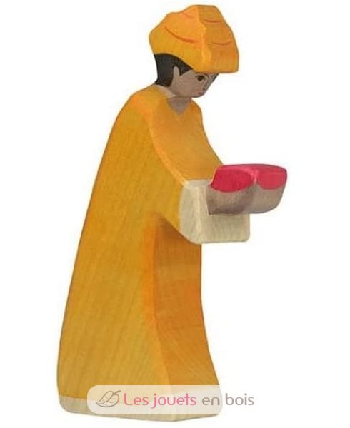 Melchior, une figurine en bois Holztiger pour la crèche de Noël (réf. 80306). Dimensions : 6,5 x 2,6 x 13,5 cm.