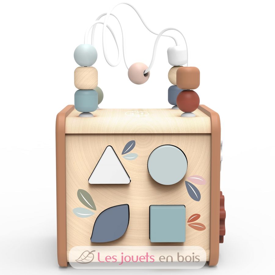 Fabriqué en bois certifié FSC, ce cube de motricité aux couleurs douces est idéal pour développer les compétences des tout-petits qui s'amusent à l'explorer et le manipuler.