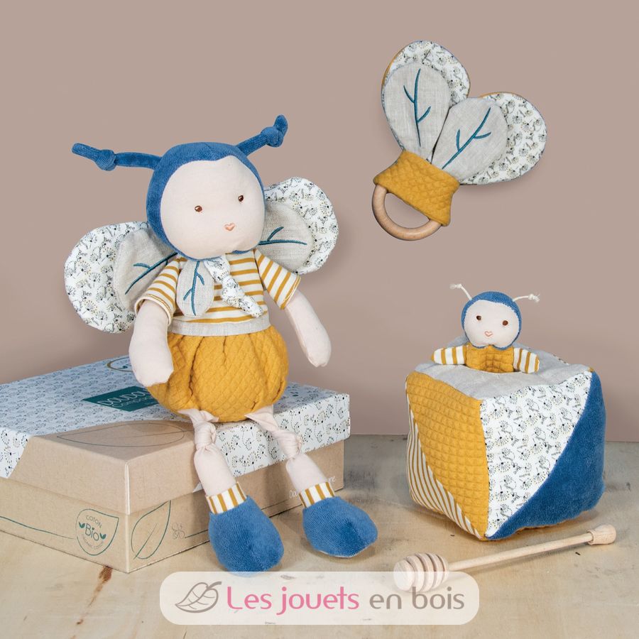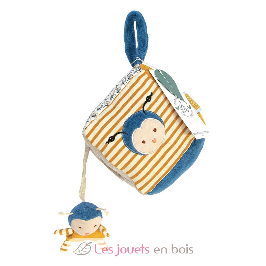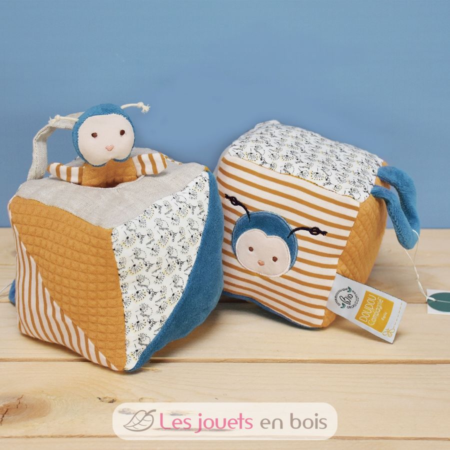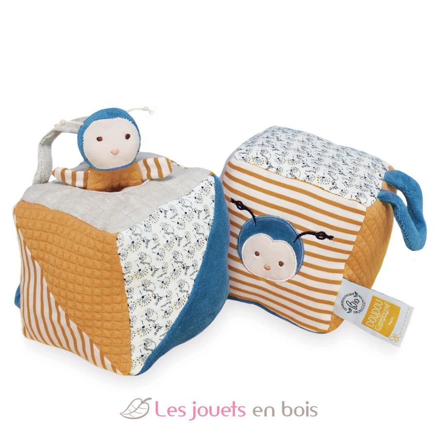 Pollen l'Abeille, le cubes d'éveil en coton biologique et rembourré de fibre de polyester 100% recyclées de chez Doudou et Compagnie.