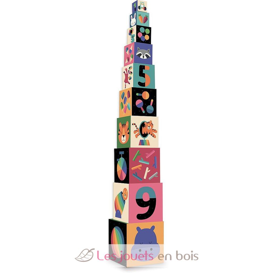 10 cubes gigognes en carton, illustrés avec une palette arc-en-ciel tout en poésie par Andy Westface.