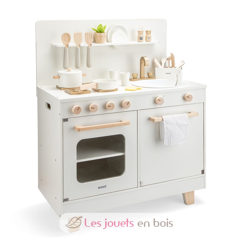 Équipée d'une plaque de cuisson, d'un four, d'un évier et d'un lave-vaisselle, cette cuisine jouet invite les enfants à explorer le quotidien par le jeu imaginatif. De la rotation des boutons à la préparation des repas, en passant par le rinçage de la vaisselle et le remplissage du lave-vaisselle, chaque détail encourage la créativité, le jeu de rôle et les interactions sociales.