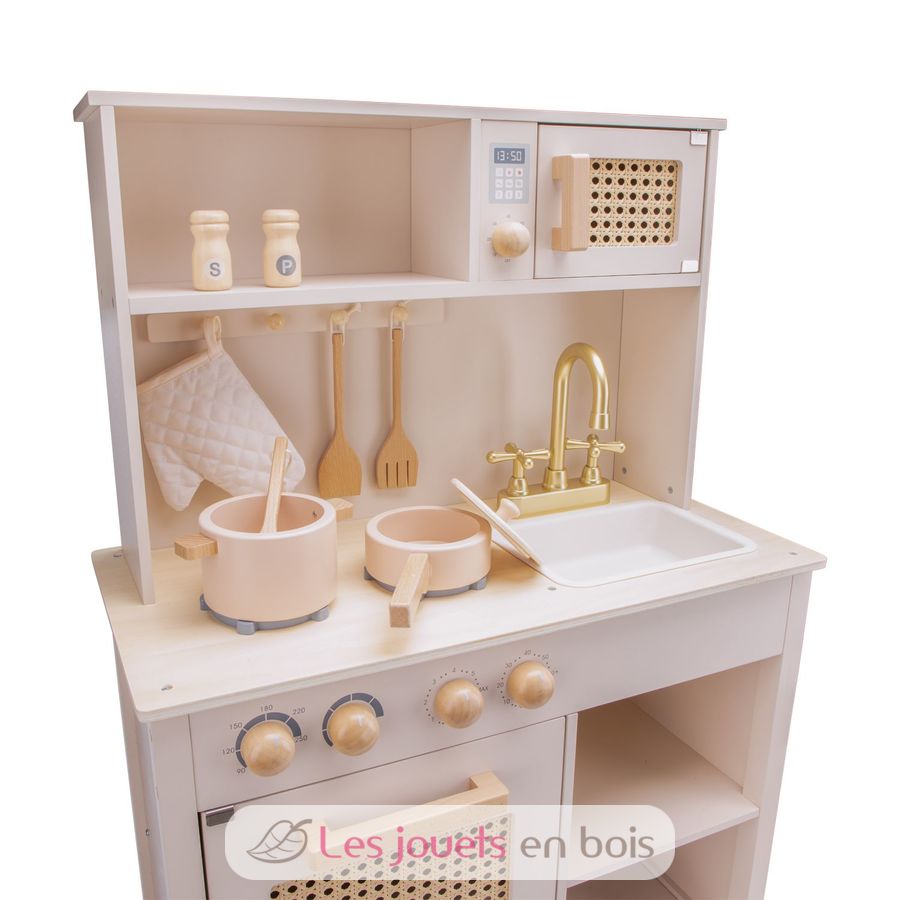 Les détails en rotin d'aspect naturel ajoutent une touche d'élégance à cette cuisine pour enfant. Que les tout-petits préparent un repas ou jouent au restaurant, cette kitchenette est parfaite pour les jeux de rôle et divertira vos enfants pendant des heures.