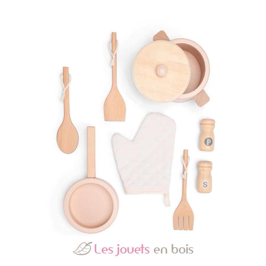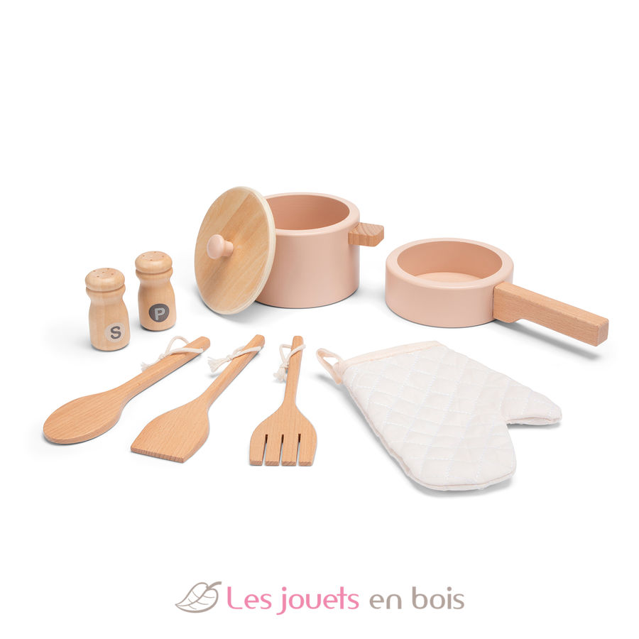 Les petits chefs cuistots vont pouvoir mitonner de bons petits plats pour leurs convives dès 3 ans grâce aux accessoires fournis avec cette cuisine : une casserole avec couvercle, une poêle, 3 ustensiles, une manique, une salière et poivrière.