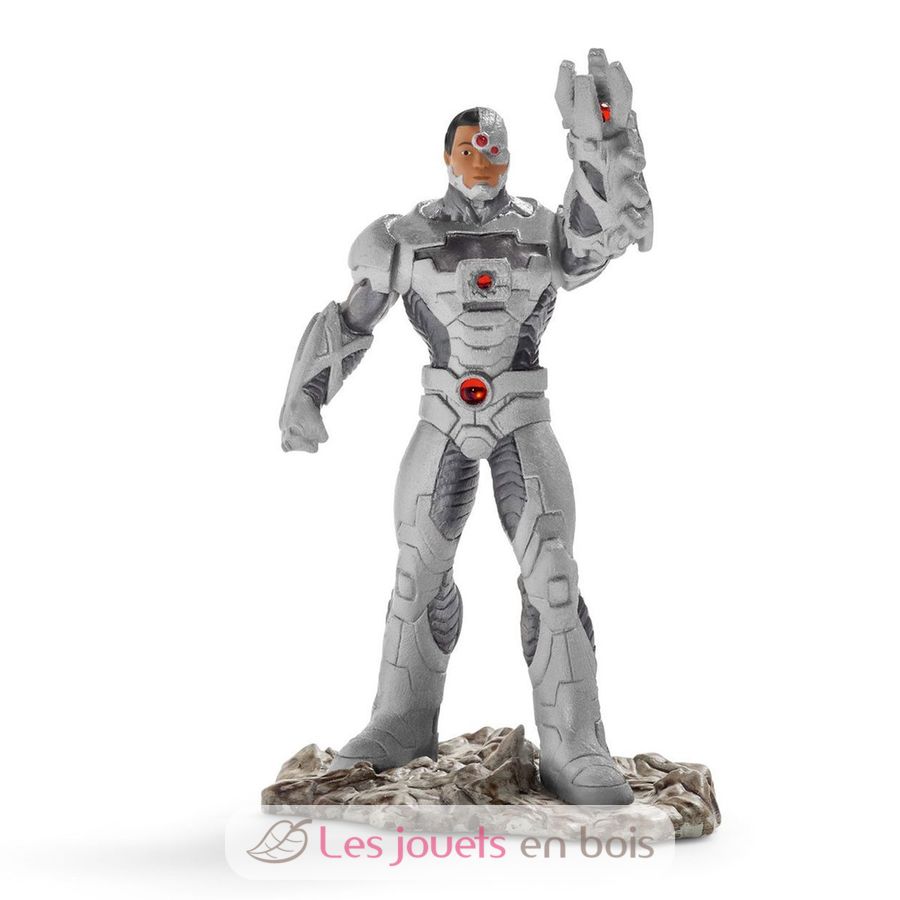 Cyborg est mi-homme, mi-machine. Son véritable nom est Victor Stone, un homme qui a en fait perdu la vie lors d'un accident tragique mais qui a été transformé en super-héros grâce à la cybertechnologie. Son corps mécanique ultra technologique abrite un immense arsenal d'armes spéciales high-tech. Il fait principalement partie des « Teen Titans » mais est aussi un membre de la Ligue des justiciers. Cyborg, une figurine de la marque Schleich. Réf. 22519.