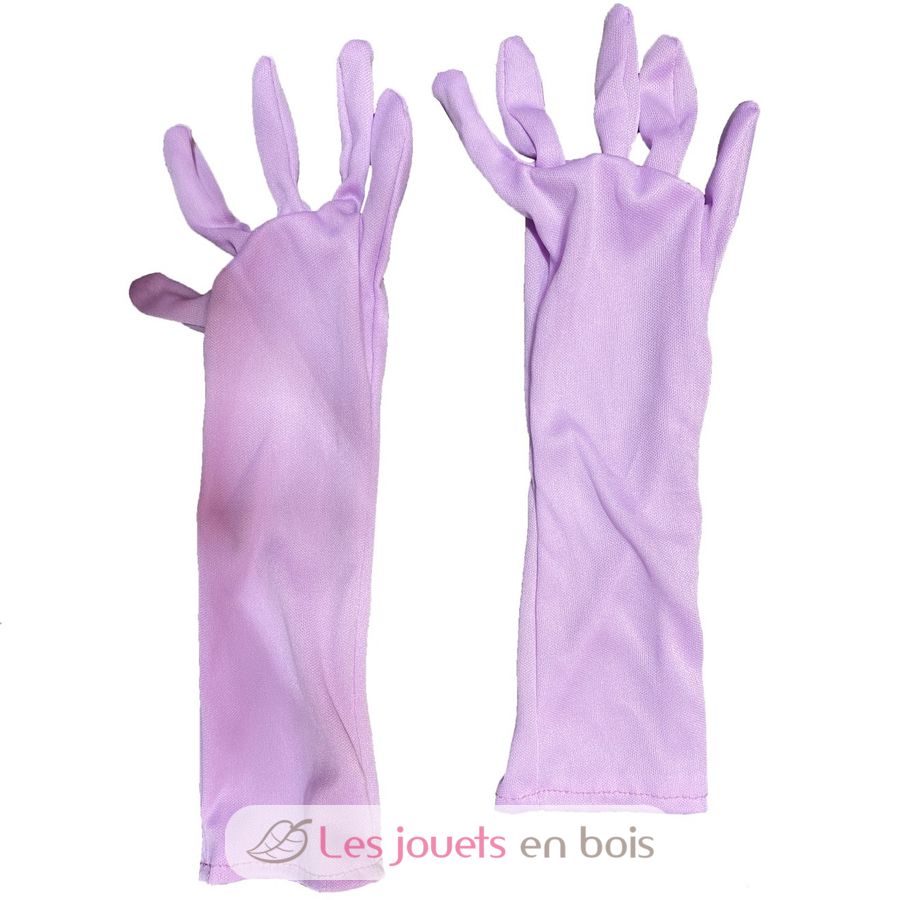 Ce déguisement pour enfant comprend une robe de princesse lavande à manches courtes avec bustier effet velours irisé extensible et jupe bouffante en organza irisé surmontée de tulle, une tiare et des gants.