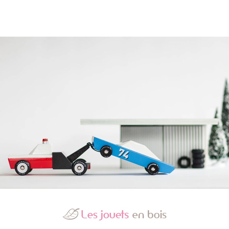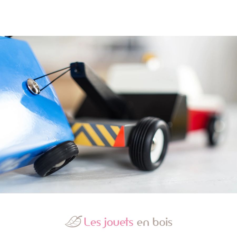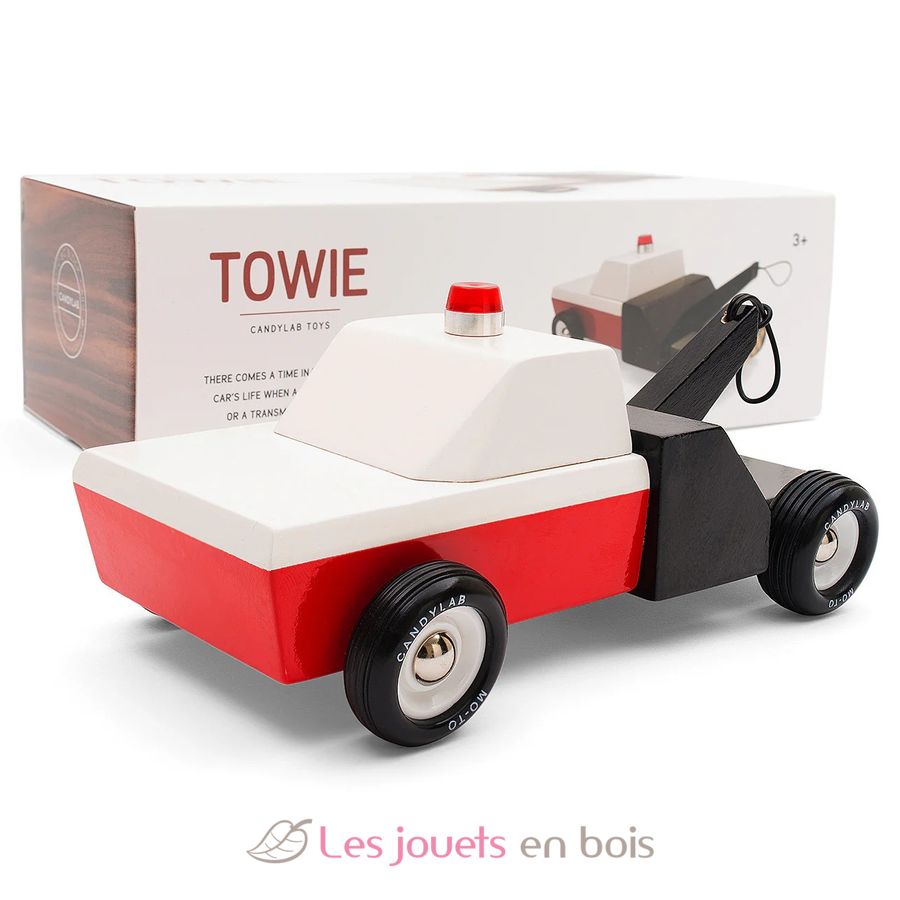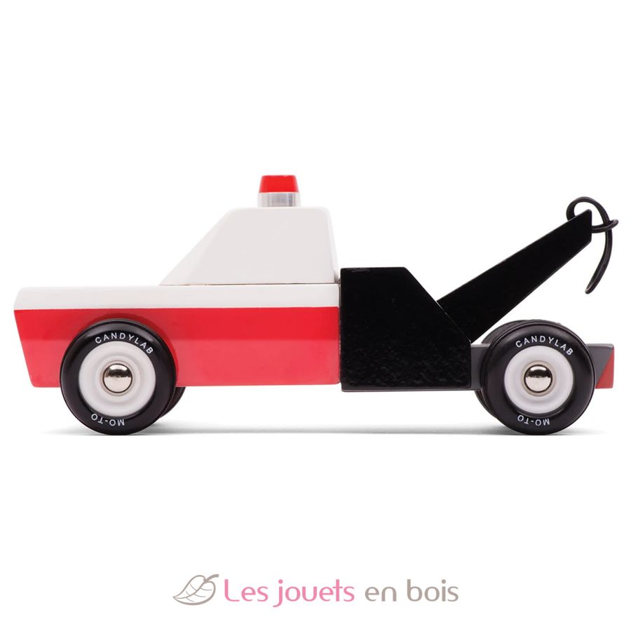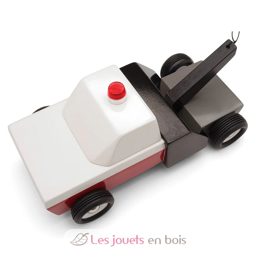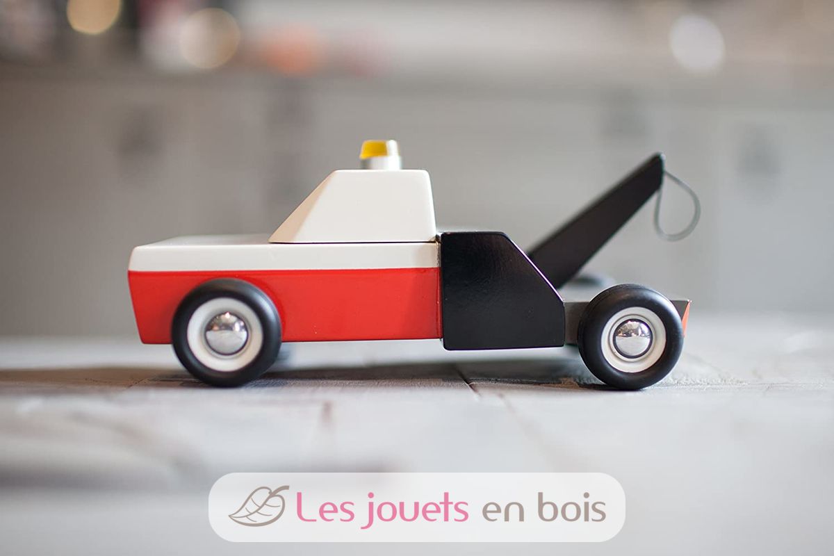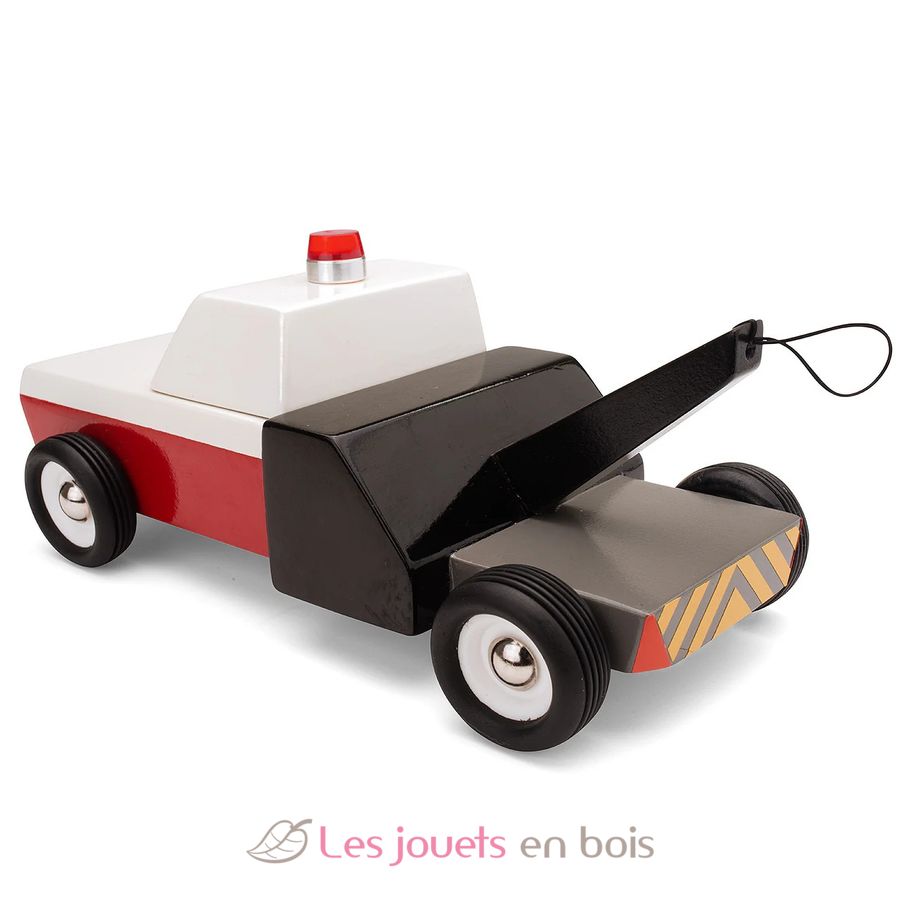 Towie, la dépanneuse remorqueuse rouge et noir en bois de la marque Candylab, réf M0601.
