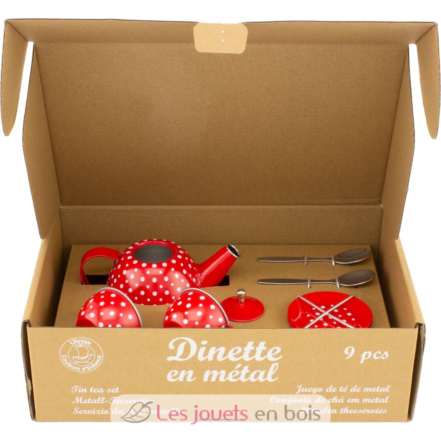 Dinette en métal rouge à pois, un set de dinette pour enfant de la marque Ulysse.