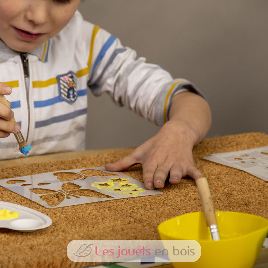 Ce set contient un paillasson en fibre de coco de 60 x 40 cm, des feuilles de pochoir, un pinceau et de la peinture pour paillasson. Avec un peu d'imagination, ce set vous permettra de créer le plus beau des paillassons !
