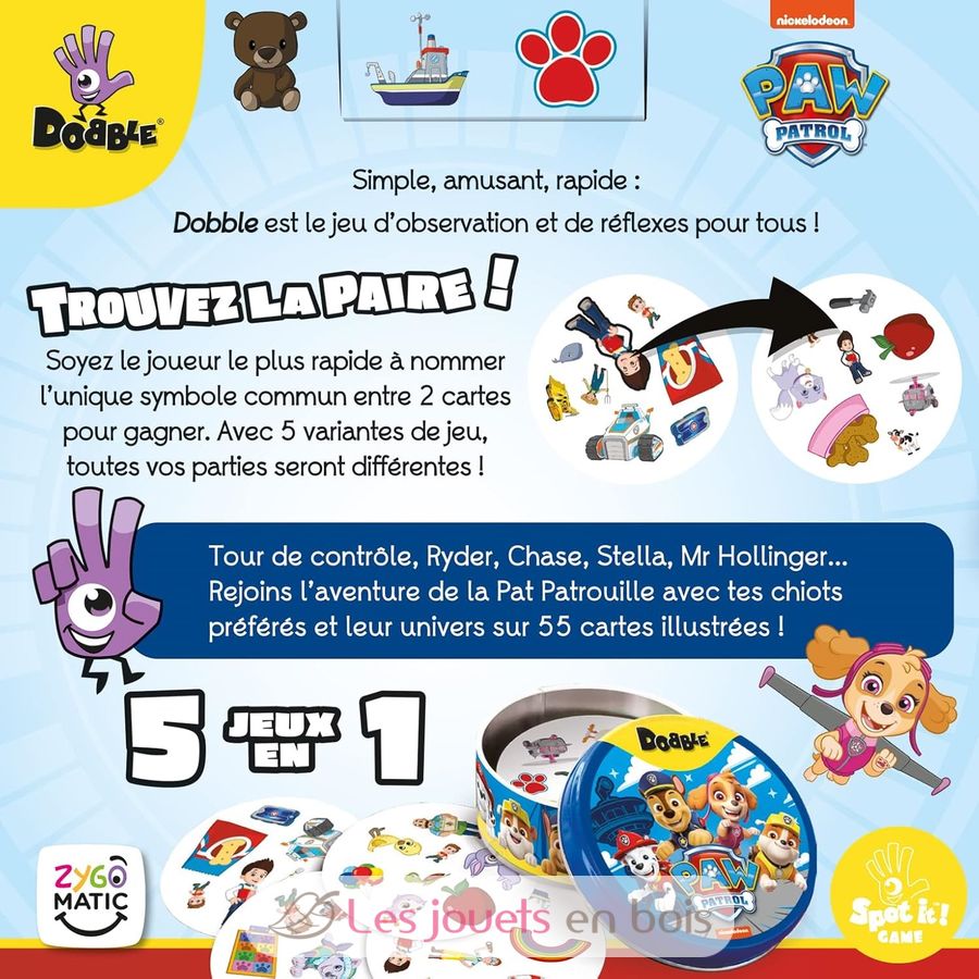 Retrouvez les célèbres personnages de la série animé Pat’Patrouille dans cette nouvelle version de Dobble !