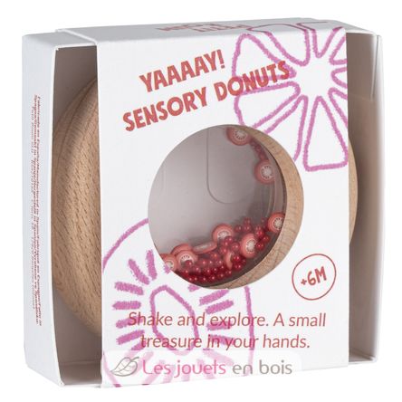 Le donut sensoriel un hochet en bois en forme de beignet, idéal pour que les petites mains puissent l’agripper et le manipuler confortablement.