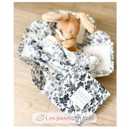 Un lapin avec une jolie frimousse, accompagné d'un doudou vice et versa : un côté ultra doux et apaisant et un autre doté avec un imprimé fleuri en coton. D'un format adapté à la morphologie des nouveaux-nés pour les éveiller en douceur au monde qui les entoure, ce doudou est présenté dans son joli écrin assorti. Un cadeau idéal dès la naissance.
