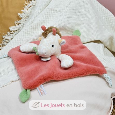 Avec ce doudou plat girafe, Bébé saura facilement jouer, rêver et s'éveiller au monde qui l'entoure. Ce doudou girafe est idéal pour accomplir de grands rêves ! Ce doudou plat girafe est composé de deux tissus, l'un ultra doux en velours de coton et l'autre en coton imprimé pour un toucher différent, à apprécier en fonction de son humeur. Orné de 2 nouettes en coton, et 2 nouettes en coton lange à manipuler par les petites mains de bébé. Cette diversité de matières permettra à bébé d'apprécier des moments de calme, d'apaisement et d'endormissement.
