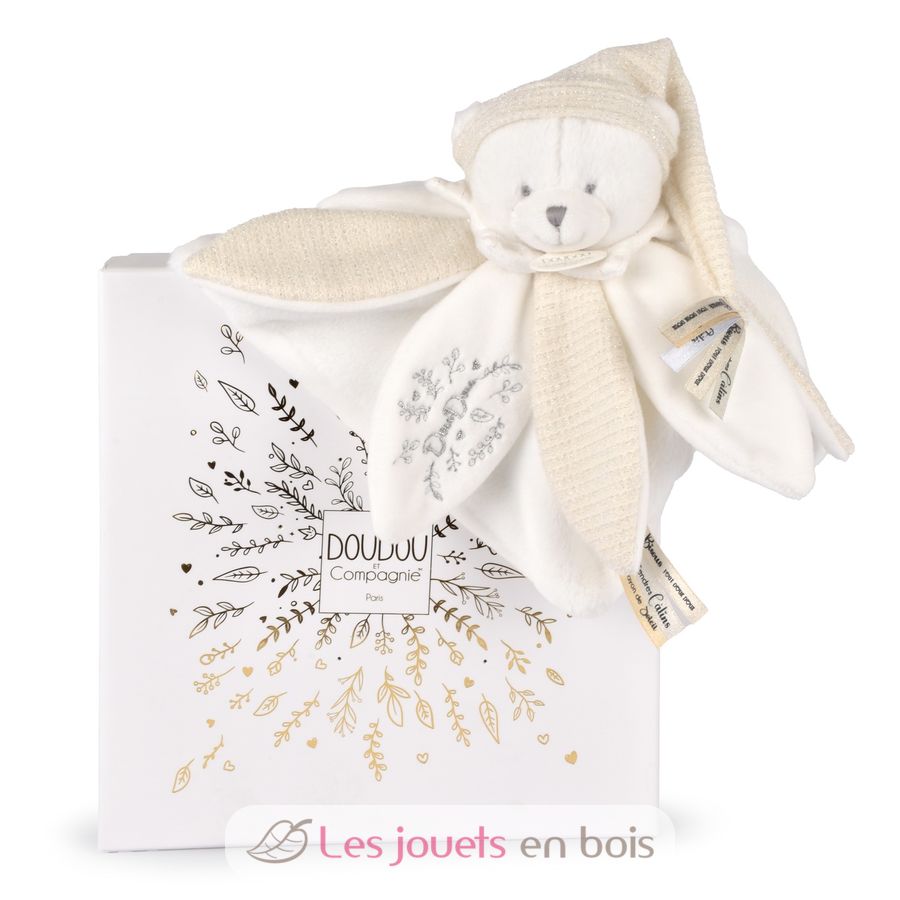 Doudou plat pétales Ours Blanc 25 cm. Référence DC4342.