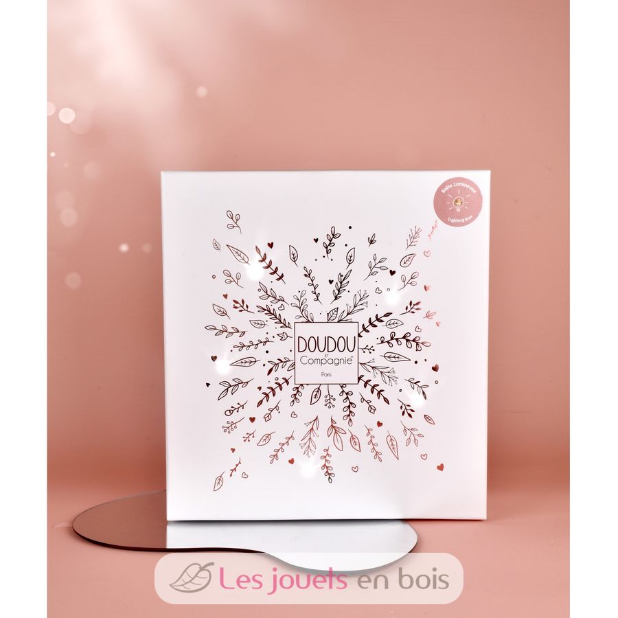 Offrez à Bébé un écrin de douceur avec ce magnifique doudou plat, spécialement créé pour célébrer les 25 ans de la marque Doudou et Compagnie. Son tissu en tweed rose, d'une douceur incomparable, et ses broderies délicates en font un compagnon précieux, dès les premiers instants. Les petites étiquettes poétiques, ornées de messages affectueux comme "Bisoux tous doux" ou "Rayon de soleil", ajoutent une touche d'émotion. Conçu pour éveiller les sens, ses grands pétales favorisent la motricité fine, tout en offrant des instants de réconfort. Livré dans une boîte cadeau lumineuse (présence de LEDs à l'intérieur de la boite).