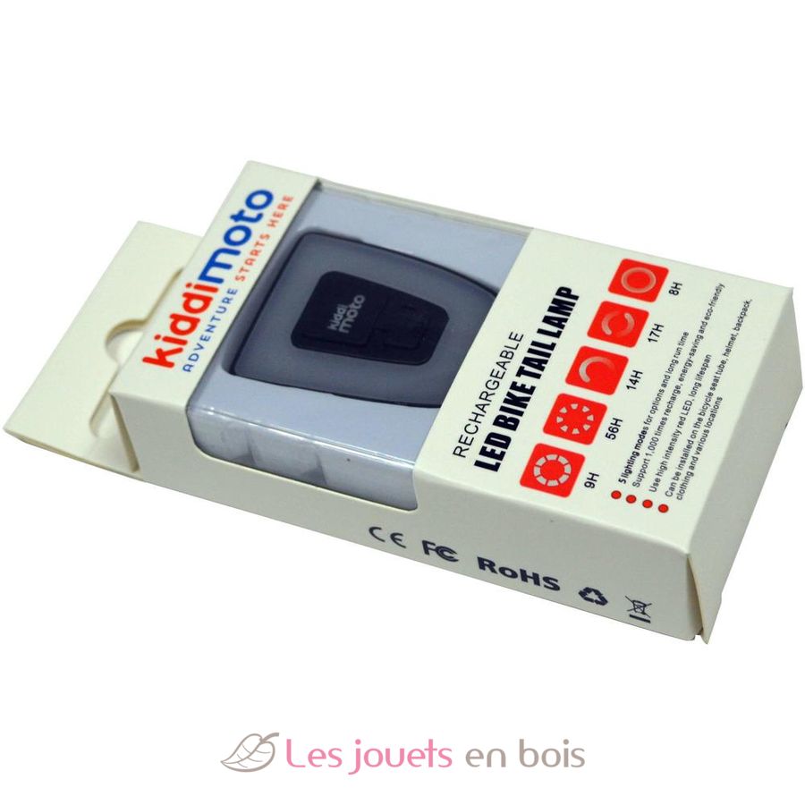 Eclairage de visibilité arrière à LED rouge, rechargeable, qui peut être installé sur le tube de selle de vélo, le sac à dos, les vêtements ou sur les casque intégraux Ikon Full Face de chez Kiddimoto.