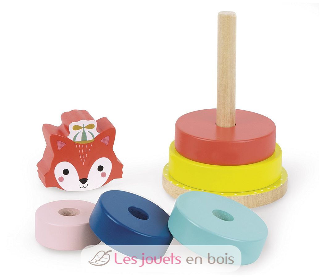 Empilable Renard, un jeu d'anneau en bois 1er age de la marque Janod. Référence J08014.
