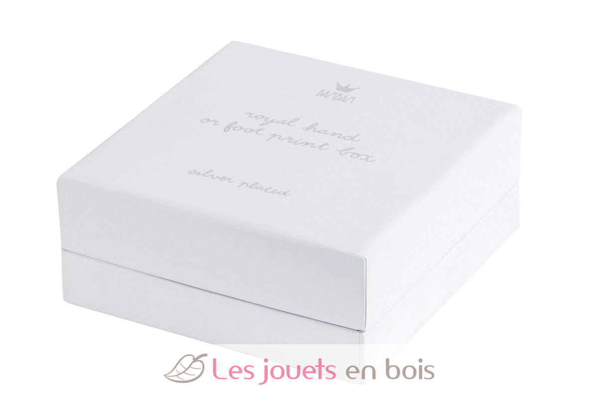 Cette très jolie boîte d'empreinte "pieds et mains" BamBam permet de créer une empreinte précise de la main ou du pied de l'enfant. Simple à réaliser, les empreintes conservées dans une très belle boîte en métal argenté BamBam, seront un souvenir personnalisé pour toujours. Livrée dans une belle boîte cadeau. Coffret "Empreinte pieds et mains argentée" de la marque BamBam. Réf. BB81460