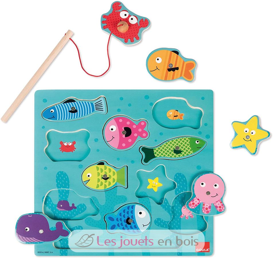 Un jeu de pêche à la ligne fabriqué en bois par la marque Goula. Référence 53131.