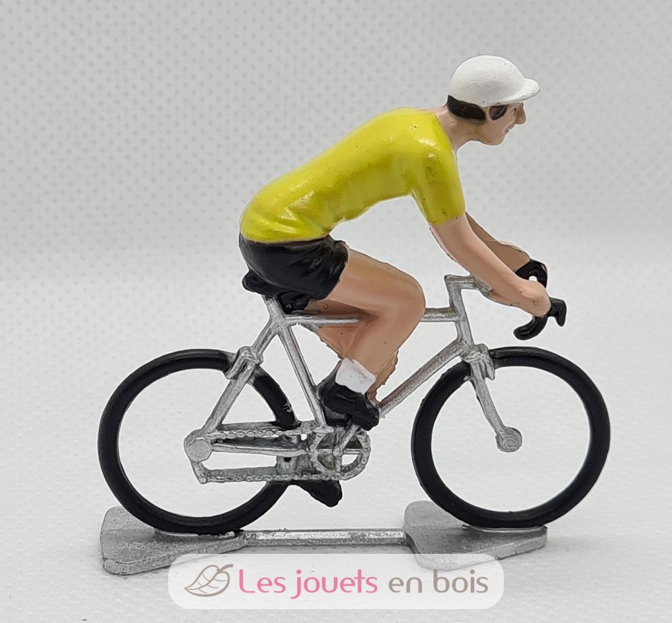 Figurine de coureur cycliste, modèle R (Rouleur), peinte aux couleurs du maillot jaune, le leader du Tour de France.