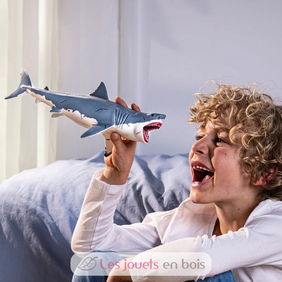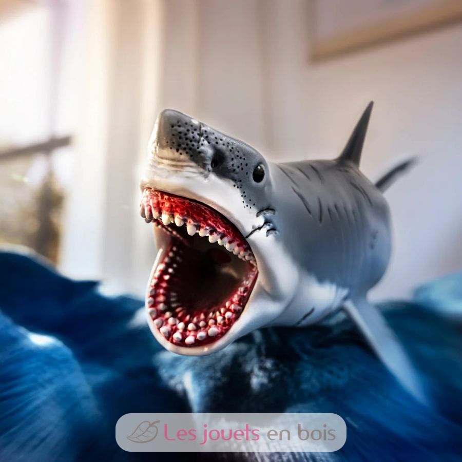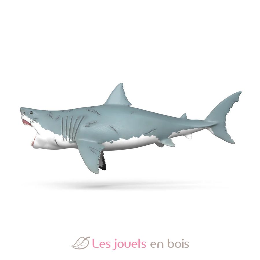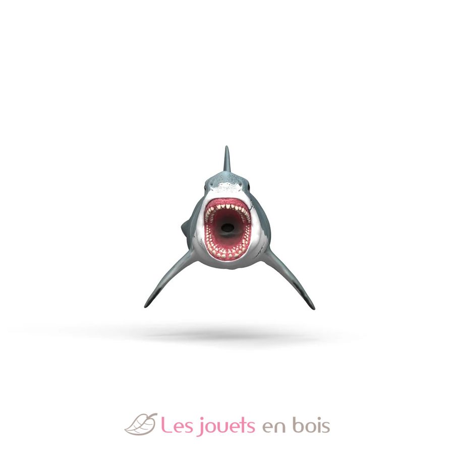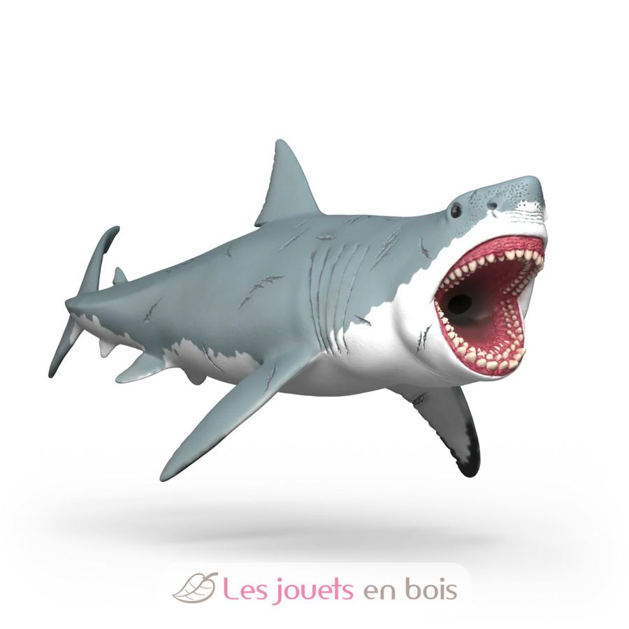 Le mégalodon, avec sa peau grise recouverte de cicatrices, est un véritable géant des temps anciens. Malgré sa taille impressionnante de 17 mètres et son poids de 60 tonnes, il nage à une vitesse fulgurante à travers les océans, toujours à la recherche de proies. Rien d’étonnant : Sa grande taille lui donne toujours faim, il doit donc manger en grande quantité. Il ouvre sa grande gueule de manière menaçante, dévoilant ses dents de requin acérées. Une fois qu’il saisit sa proie, il est impossible de s’en échapper !