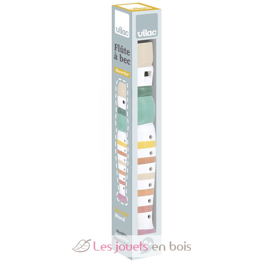 Flûte rayée multicolore en bois, un jouet musical de la marque Vilac.