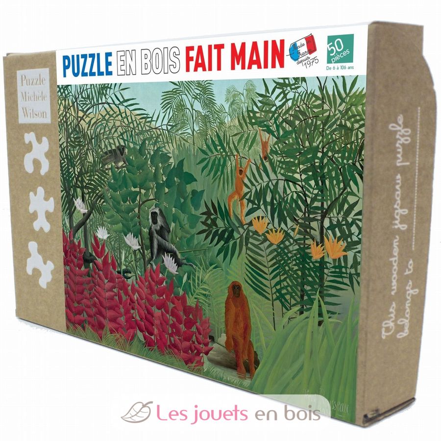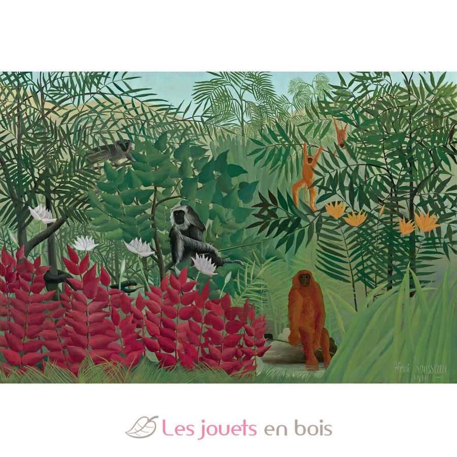 Forêt tropicale avec singes d'Henri Rousseau - Puzzle d'art en bois de 50 pièces.