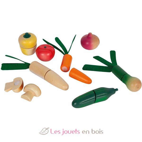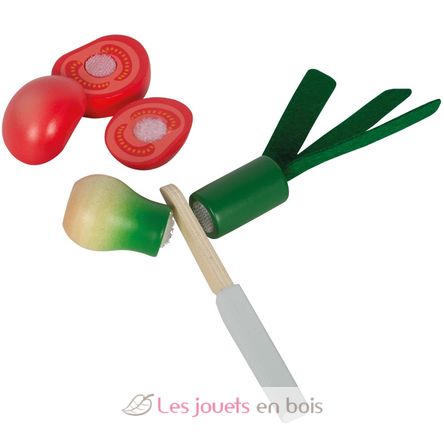 Ce set d'aliments ludiques en bois permet aux enfants de jouer de manière particulièrement réaliste dans leur cuisine.